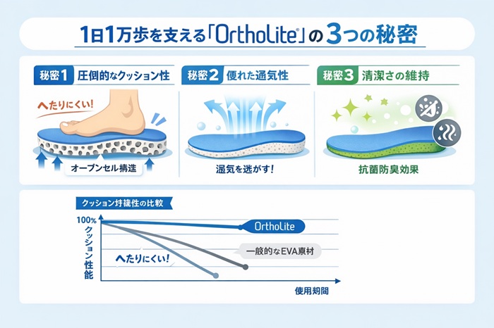 1. 世界基準のインソール「OrthoLite(オーソライト)」の採用